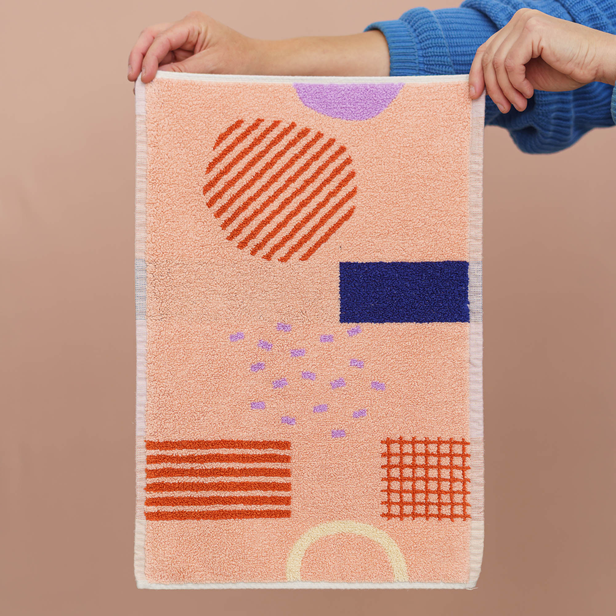 Durch die Jacquardwebung ist die Rückseite farblich immer invertiert (gespiegelt). Auf der Längsseite ist mittig eine Kordel zum Aufhängen.