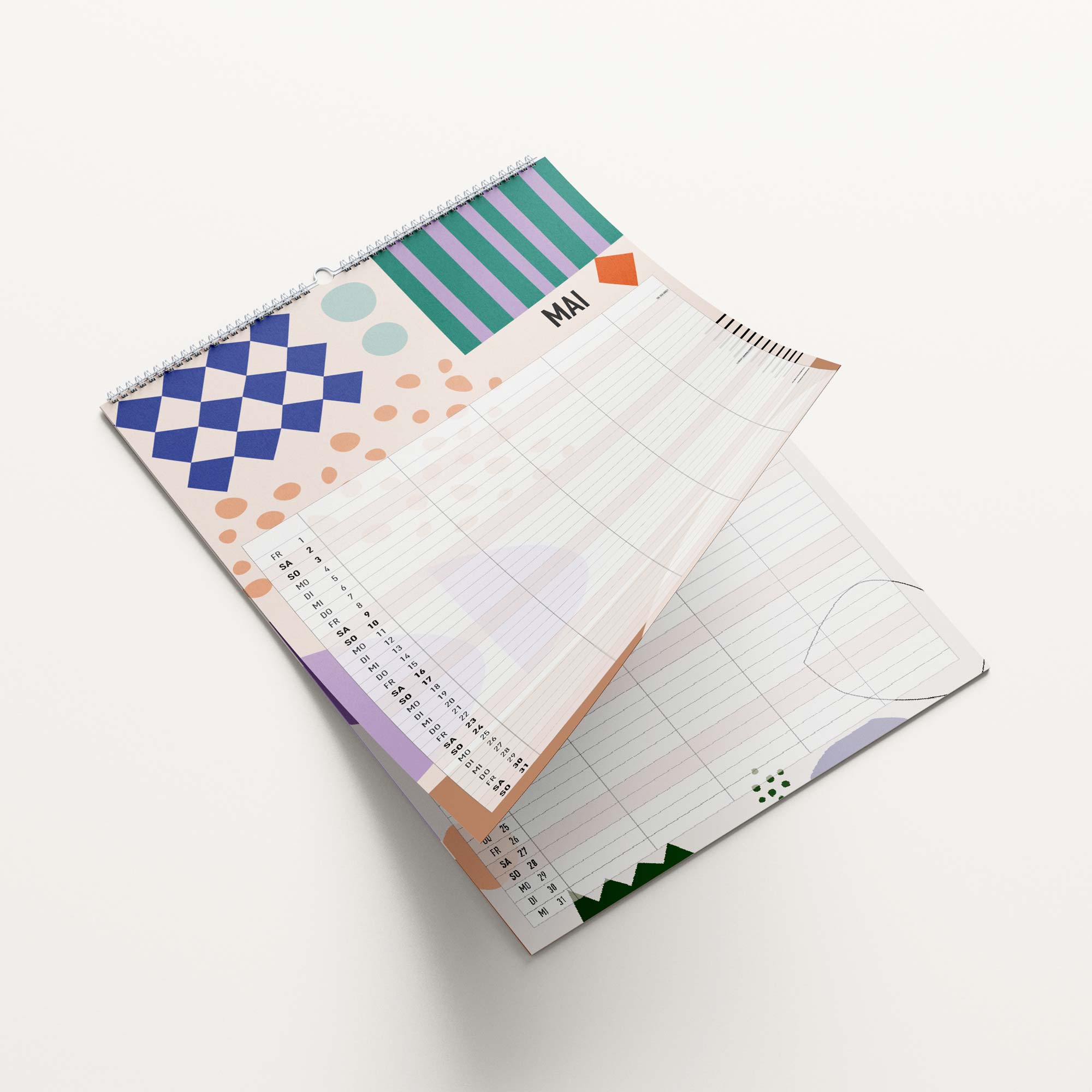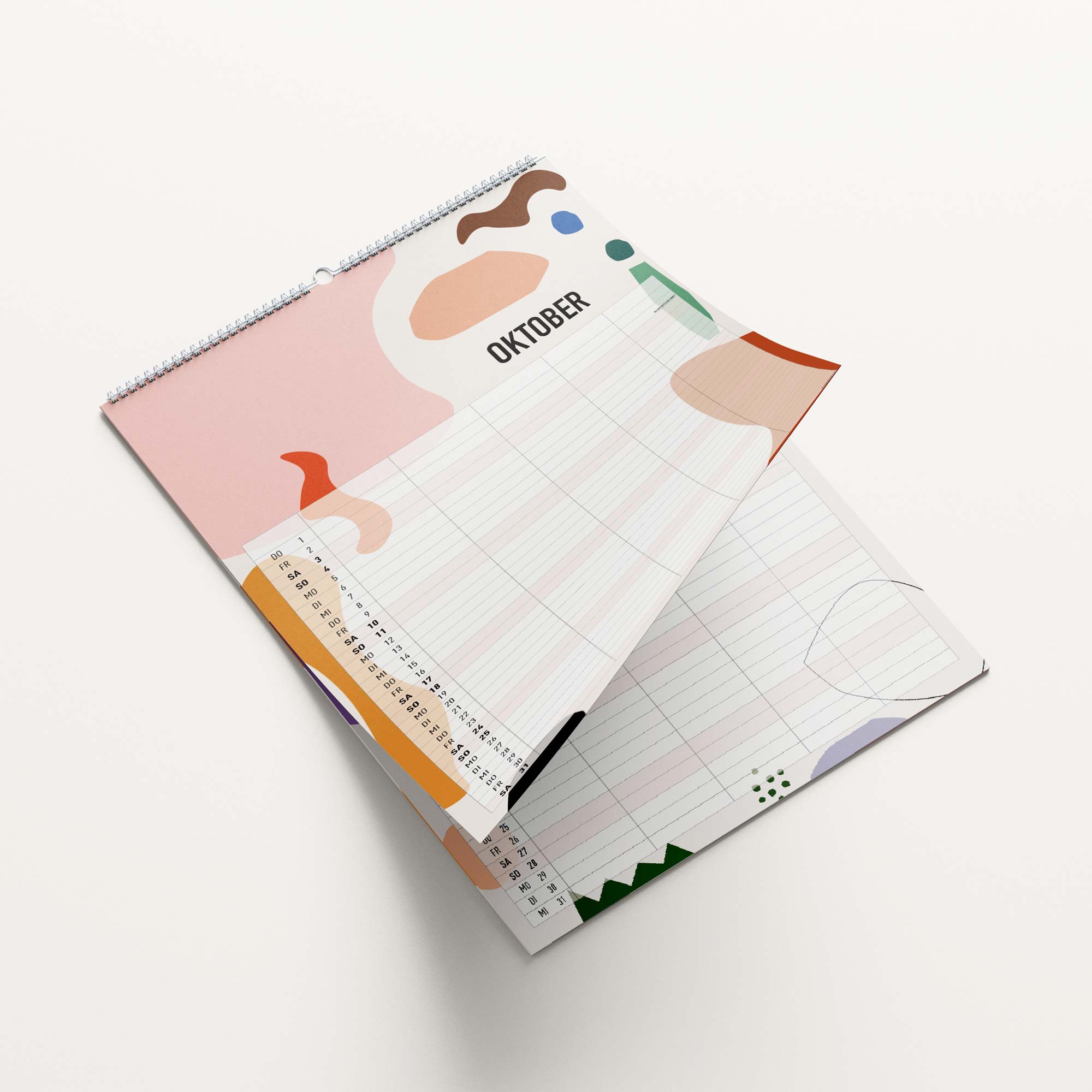 12 Kalenderseiten, plus Deckblatt, plus einem immerwährendem Geburtstagskalender. Der kann dann rausgeschnitten und separat als Poster genutzt werden.