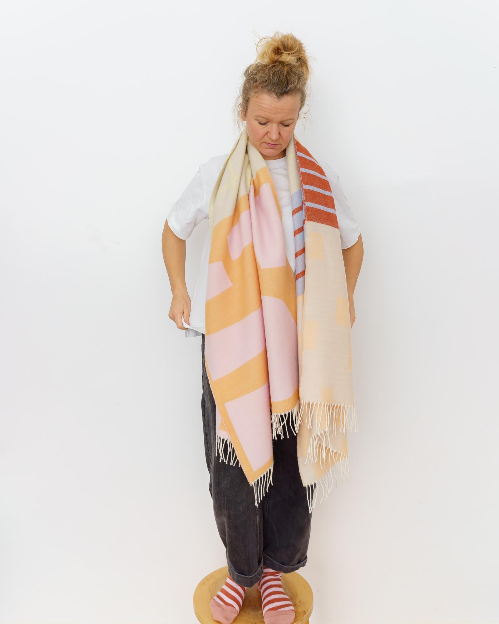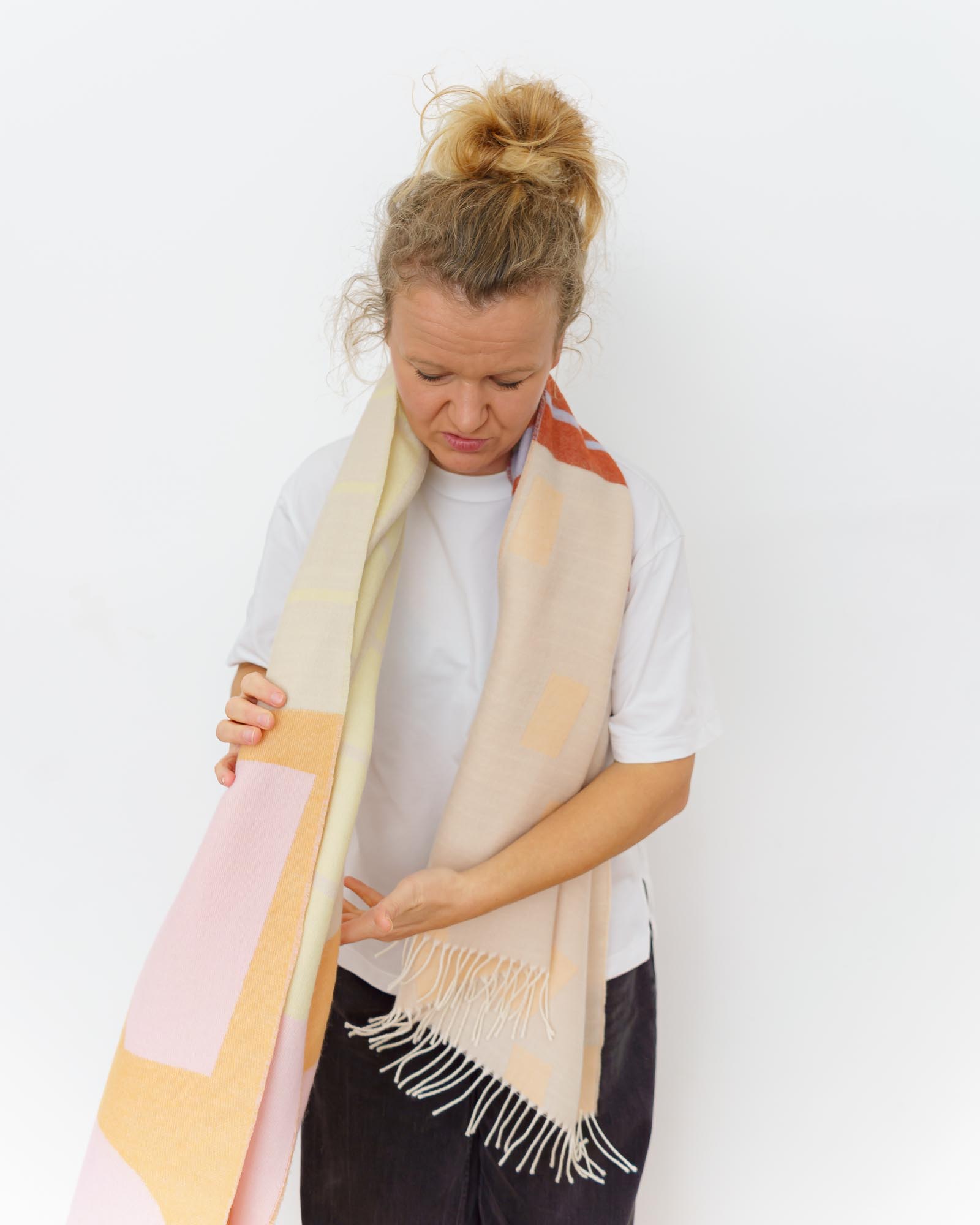 Die Merino Schals werden nach dem Weben angeraut und bekommen so eine weiche Haptik.