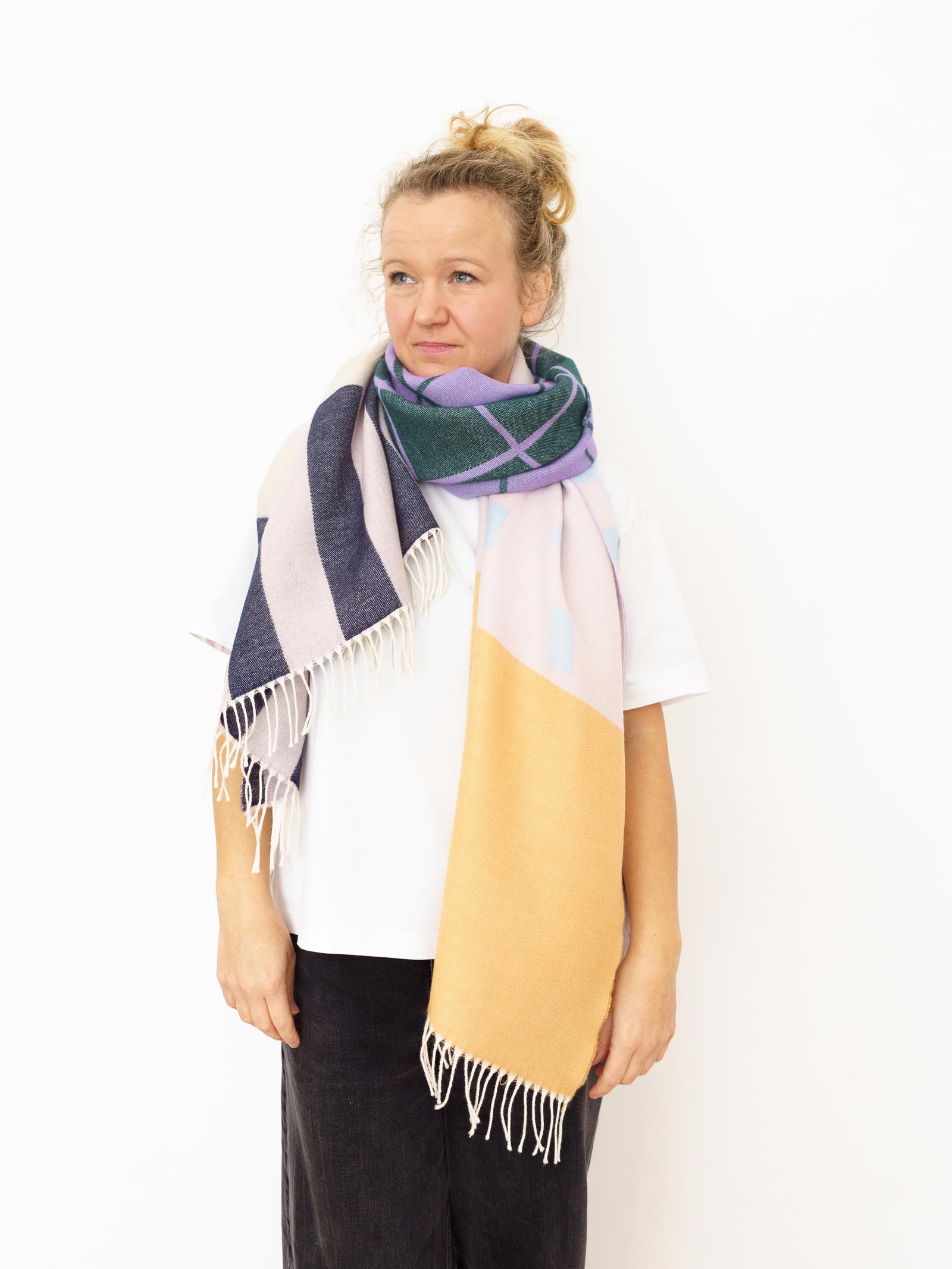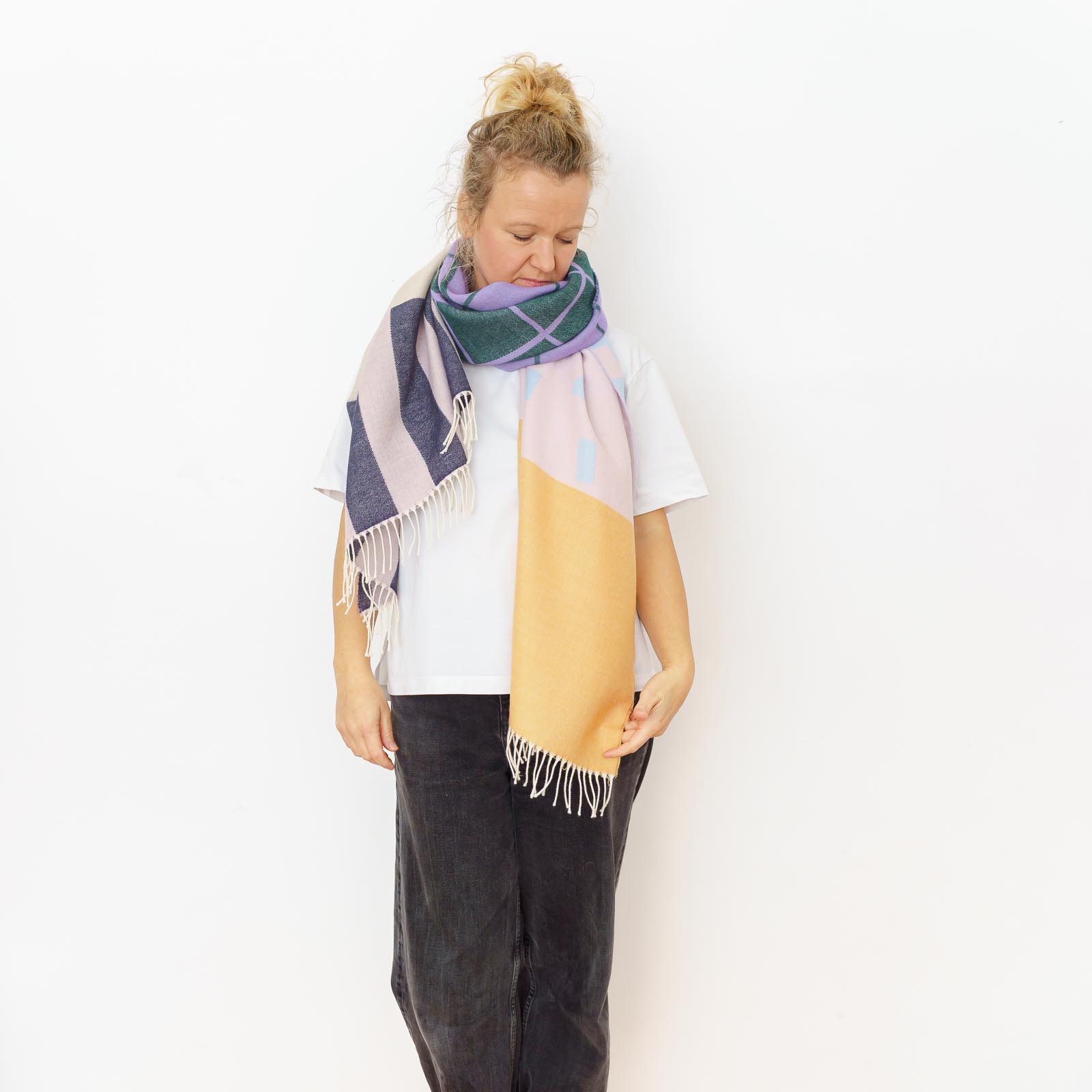 große und kuschelig weiche Schals und kräftige Farben. Dir Rückseite ist immer invertiert, also farblich gespiegelt.
